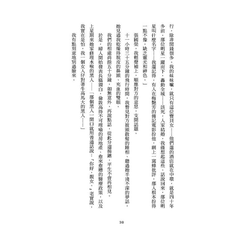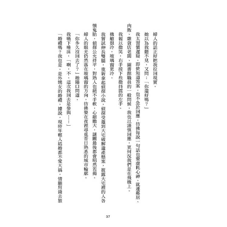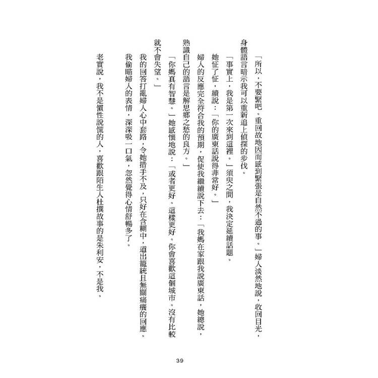 深層記憶的所在,那些年久失修的單戀客體,春秋數載未歸的荒蕪原鄉,最初也最過期的各種認同,皆被封印在心底一淒風陰厲的haunted house裡。《無眠大宅》是三維的以魅除魅之旅,她以辯證為道,在真實/虛構,正與負間踽踽獨行,西貢村里為景,沿途她以曝光亮潔的文字召喚分身,幻影,擾動敘事幽靈,以如隱沒於空,利銳無比的風箏線操偶群戲。一段拼貼過的去真實檔案資料,待讀者坐上扶乩桌,跟緊探險隊伍,重返案發現場。