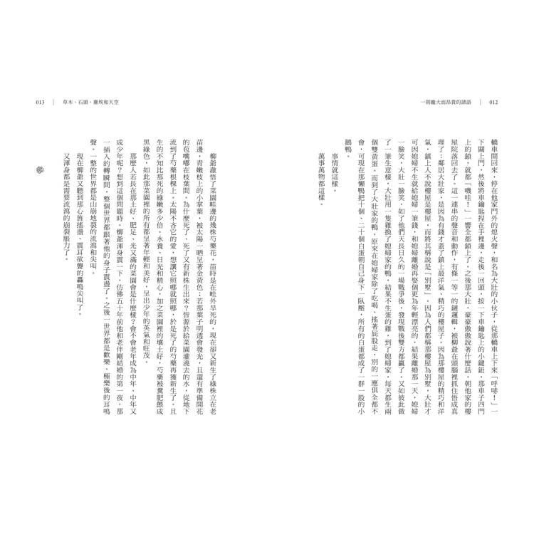 這些故事直視荒唐並詰問生命與時間,寫盡家庭與婚姻的熬煉、金錢的誘惑、權力的迷霧、愛與不愛的殘酷;亦寫下人們為生存所做的最後一點祈求,或最後的反抗。閱讀這部冷冽卻深情的小說集,不只走進小鎮,也走進閻連科的信念深處:小說之所以存在,是為了讓我們感受那些不曾被言說、卻無比真切的生命震動。