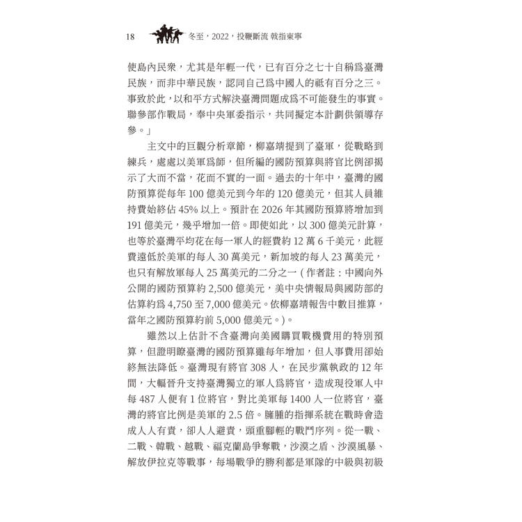 事的臺灣軍方人員進行訪談所得的第一手口述紀錄。雖然部分關鍵決策者因現居美國或中國,基於個人考量婉拒受訪,但作者仍得以透過多場深入座談,掌握臺灣方面在戰前部署與應變上的詳細脈絡。