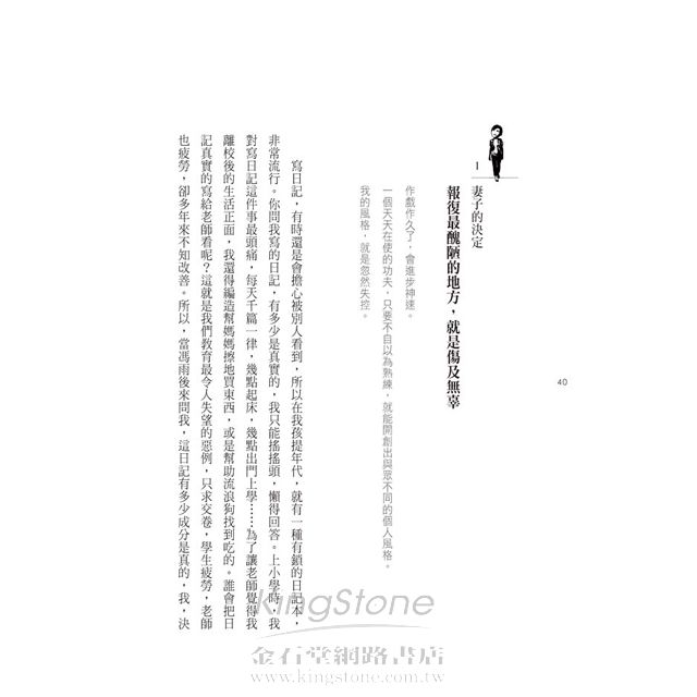 書中的每一篇,我都選擇用第一人稱寫,就是想讓每個角色說出心裡話,像自白一樣。希望你了解,當心中情感糾結時,如何完整表達自己的感受。我盡量想辦法讓每個人有機會講出內心話,因為很多人不知道自己有發言權,才一直說不出心裡的感受。一旦我們知道自己有這個權利,就會想得更深入更願意誠實面對、理解心中的需求。你將會看到自己一直不願意面對關係中的真相,你終於承認了,愛情或婚姻是你用盡一切心思去擁有,但是卻不知道如何享用的東西。無知,才是讓你痛苦的源頭。若能看見真相,你離幸福也不遠了!