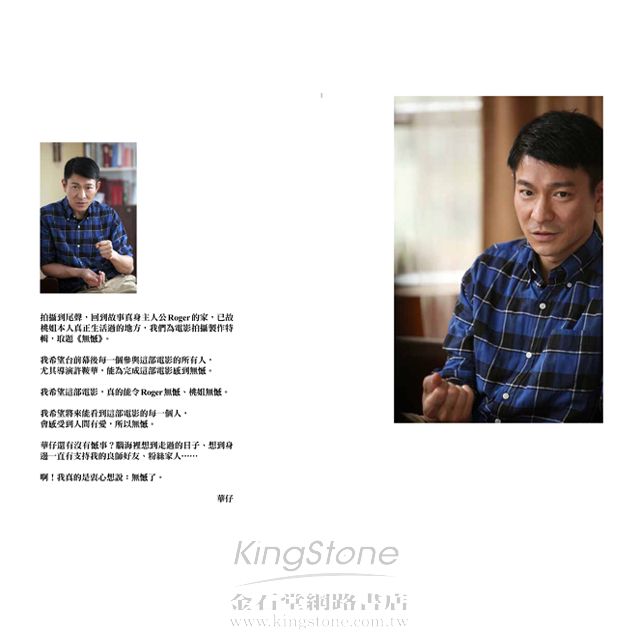 華仔有過人天賦,又如此勤奮,自然也是一位要求嚴格的老闆。但跟他共事是十分美妙的。他決定要做一件事,就絕不躊躇猶豫。他信任一個人,會信任到底。拍攝《桃姐》期間華仔給我的信任,比我的自信還要強!華仔當然也有待人親和的一面,在這書裡你會看到他凡事觀察入微,對人關懷備至,讀者可以慢慢細究,但不要以為跟他合作也是這樣輕鬆平常就好。