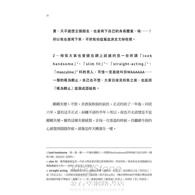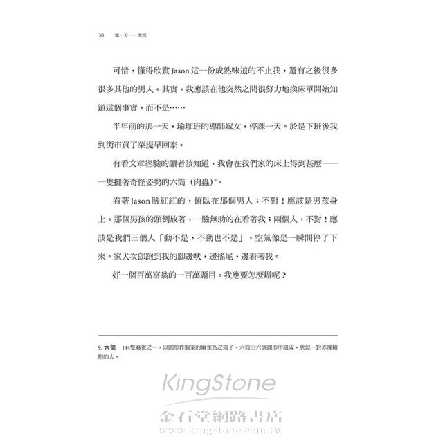 我們將《突然獨身》收錄在「G+」書系,鄭重為它編上「B005」的書號。終於,要讓它正式和台灣讀者見面了,此時此刻的心情既是興奮、也是驕傲。如同「G」 後面那個小小的「+」,我們期待《突然獨身》的推出,能為此地的同志書寫,帶來新的啟發和激盪,亦能在讀者心上,烙下一枚恆久的、難忘的印記。