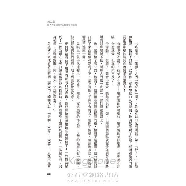鬼眼三用他孤獨的一隻眼睛盛著雙倍的崇敬望著盲爺自顧自地說道:「明招子(眼睛看得見)的時候夏爺是西北賊王。」是的,原先盲爺的「盲」字可是鋒芒的「芒」。西北賊王夏芒爺,輕飛快刺無匹敵,那可是江湖中響徹一方的名號。