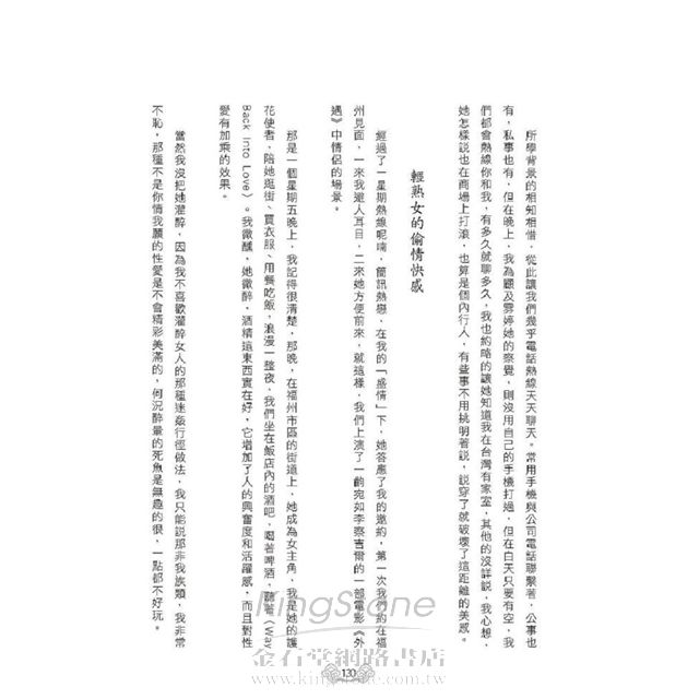 日間運籌帷幄,夜裡紅燭高燒,看台灣郎與眼前形形色色大陸女孃,相逢相識於文化生根之處,相知相惜同遊於性海情山,共尋萌芽綻放的異地戀情,脫卻了道德的束綁,寄情精神上的相戀,縱放肉慾的昇華,揮灑解放後的浪漫。