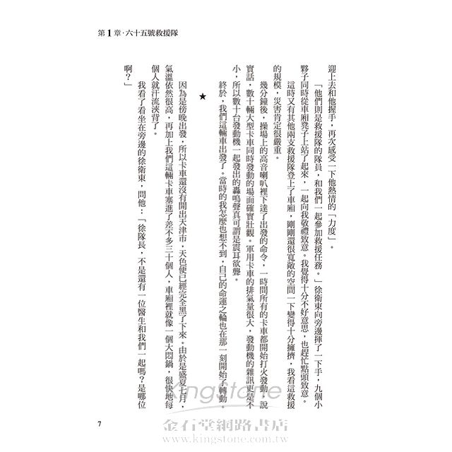 「唐記者,我給你介紹一下,這位是分配到我們六十五號救援隊的沈大夫。」徐衛東一邊向我作介紹,一邊用手拍了拍卡車,車子隨即揚長而去。