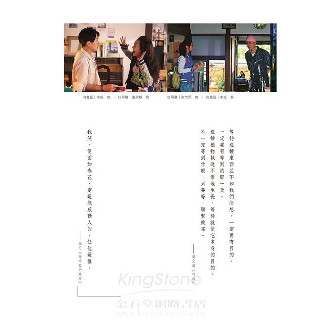 是的,這便是我一開頭所說,從「巷弄裡的那家書店」這個故事概念延伸,進而創造出來的「相似卻不相同」、「具有自身媒材特性」的共創商品。我們很開心 與相當優秀的創作者烏奴奴與夏佩爾合作,他們兩位僅僅與顧問楊照開過幾次會,便充分掌握這個故事的精髓,用文字演繹出不同的韻味。這小說用文字說了影像無 法完整表達的內容,也說出了自身想說的話。正如影像的呈現給人的感覺更為具體和直觀,同樣的故事透過不同的媒材,自然有其獨特的創作樣貌。