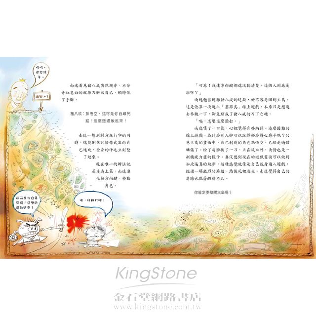 本書是關於電玩新手姜南逸、已沉迷於電玩的李岱昇,以及電玩至尊洪仁奎,與他們創造的三個遊戲角色──孫悟空、豬八戒、沙悟淨之間的故事。我衷心希望透過這三個小朋友的故事,能讓大家了解到沉迷於電玩的後果,以及擺脫電玩癮的方法。