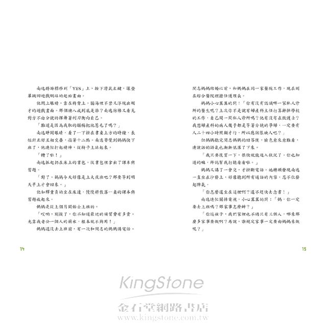 家長們更可以透過本書,了解孩子沉迷於電玩的心境。書中三位主角的故事,不僅清楚的反應出家庭環境對孩子沉迷於電玩的影響,對於家中每一份子所應當扮演的角色,也有深入的探討。