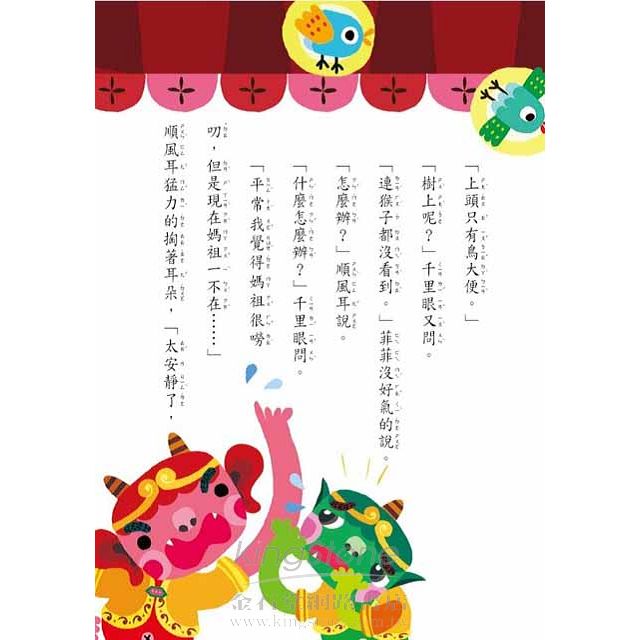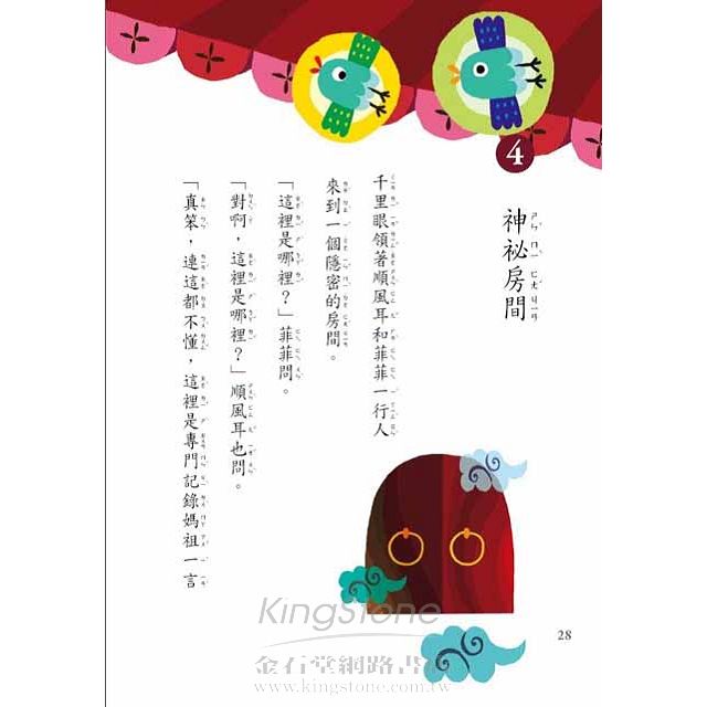 耳朵長繭、眼睫長針刺,多可怕的事情!偏偏順風耳和千里眼遇上了,是什麼原因造成呢?媽祖嘮叨成性,還是要求太多?媽祖幫助鬧鬧拯救了海上受困的奶奶,會不會受到上帝懲罰繼續坐牢呢?請安靜的跨入書中情節,就能知道事情原委。