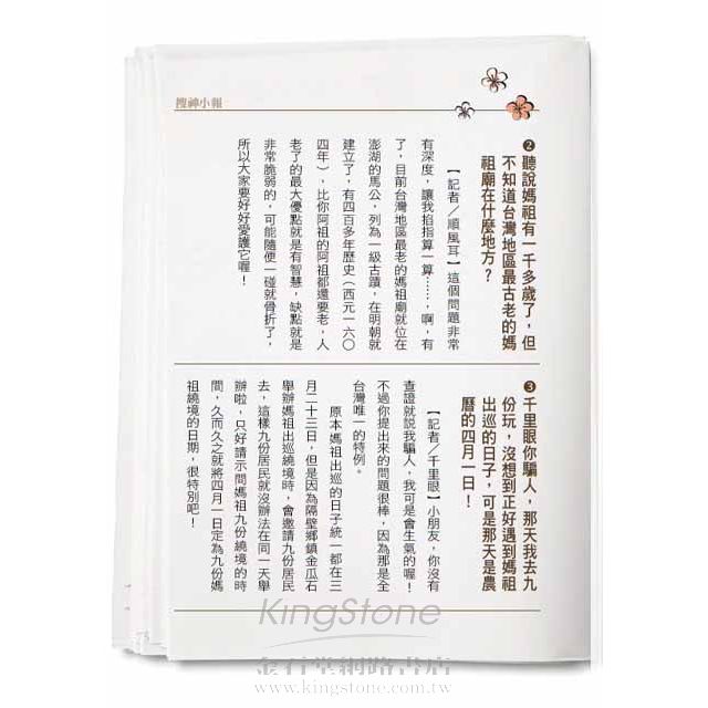 好的創意帶領人們從逆向思考中得到正向的智慧。本書先是顛覆媽祖安靜、肅穆的特質,讓人咋舌、難以接受,再導以讀者揭秘的好奇心,隨著故事情節重新發現媽祖的本性,並得到啟示:安靜傾聽是一種力量。