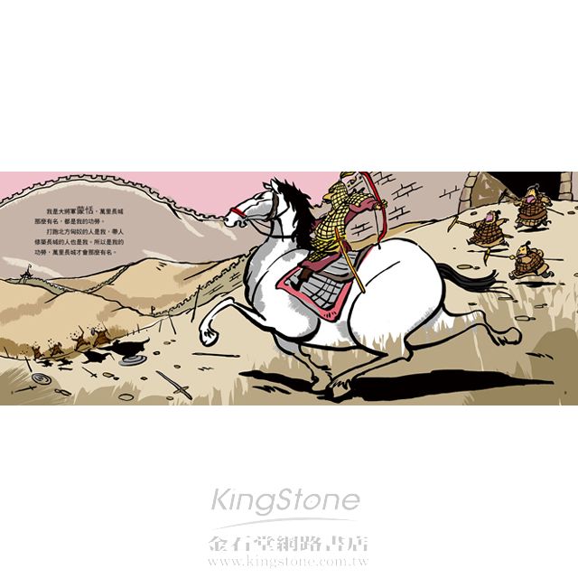 這是一本依建造萬里長城的歷史時間順序,從跨時代不同人物的角度,以淺顯易懂、幽默有趣的文字,以及生動活潑的圖畫,涵蓋歷史、文學、軍事、科技等豐富的內容,為孩子介紹萬里長城的歷史意義與知識的圖畫書。