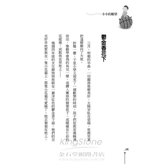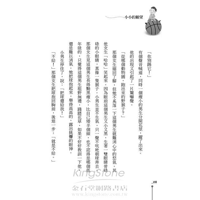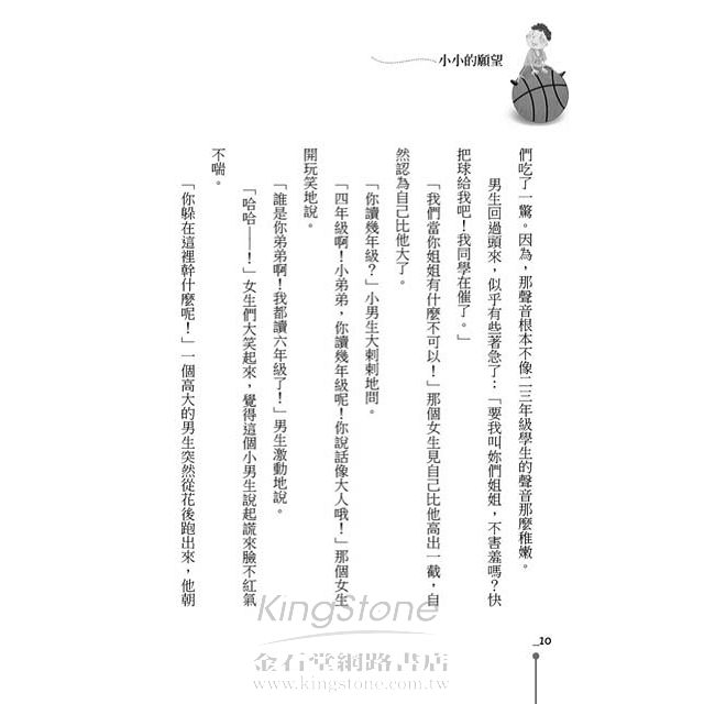班上的球隊已經有四個候補了,班長讓小小打候補不過是為了不讓小小太難堪。班上所有人都知道,小小是不會有真正上場的機會的。同學們心裡有一句誰也不願意說出口的話,作為六年級的球隊,如果派小小這樣一個長得像二三年級的同學上場,不被其他班的人笑掉大牙才怪!
