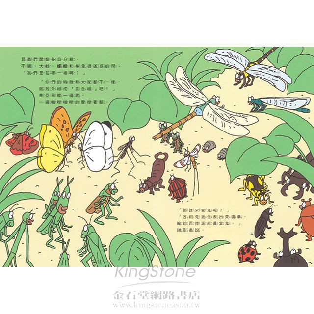 我最喜歡(昆蟲系列)之處,在於作者利用昆蟲特性串聯整個故事。譬如各組要選出誰來當鬼時,蜻蜓、蝴蝶、蝗蟲和甲蟲,四組昆蟲代表開始猜拳: