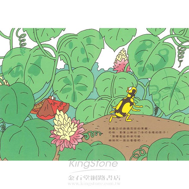 這系列書主要對象是三歲親子共讀,我發覺圖畫書對幼兒和對大人的意義大不相同,兒子在聽我說故事時,手不停的在畫面中比畫尋找,一邊得意大叫:「找到了!」完全投入到故事中,而我這個大人因為腦子裡裝了太多昆蟲百科,忙著將知識和故事中的趣味插曲相對照,而深覺獲益匪淺呢。