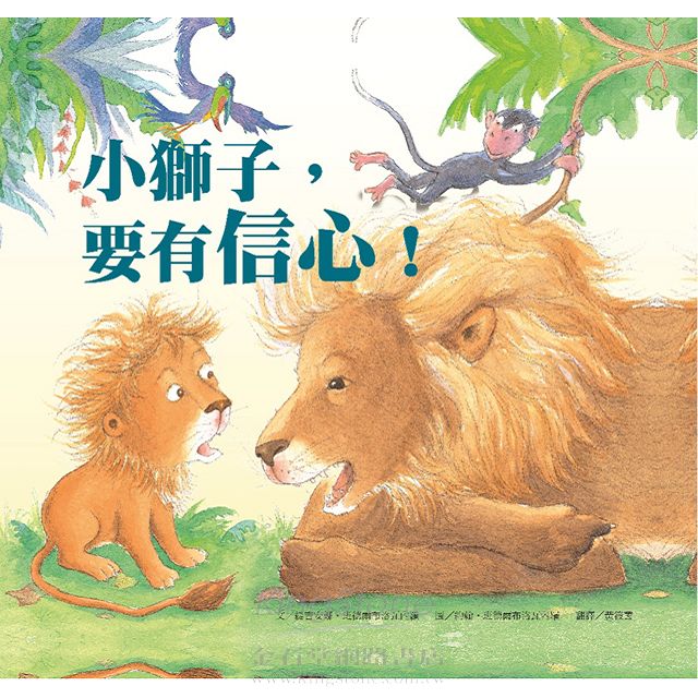 <<小獅子,要有信心!>>是一個描述在成長學習中如何建立自信心的故事。故事以動物為主角來展開所有的情節與趣味。每個動物在繪者的畫筆下,不論是奔跑、跳躍、說話,或是各種情緒表情的傳達,都表現的極為生動自然,讓人在觀賞圖畫時覺得好像身在其中,相當逼真!而作者將動物不同的感受和想法,以對話的方式呈現出來,使人讀起來更能感同深受,產生共鳴,並引導讀者在潛移默化中體會美好品格的真義。