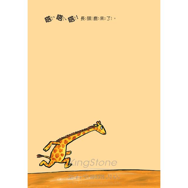 每頁文字隨著每個動物的身型和腳步來做排列設計,讓人從文圖中可以感受到動物跑步的節奏