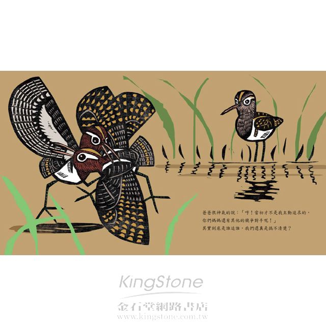 2.透過彩鷸由公鳥孵蛋、育雛的特性,訴說最可愛、動人的親子故事。