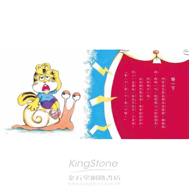 妙妙是一隻超級可愛的花栗鼠,可是他動作慢慢吞吞,做事拖拖拉拉,總要大家等他一下又一下,所以他常常被大家責罵。妙妙不禁幻想,要是自己可以擁有比別人更多的時間,那該有多好!有一天,他遇見傳說中的巫婆兔,巫婆兔給了他一隻神奇的金錶,只要輕輕按一下,全世界的時間就會暫停。哇,實在太棒了!「幸運」的妙妙,到底還會發生多少「幸運」的事情呢?閱讀這本書,讓孩子知道光陰的可貴,學會把握時間,做事更有效率!
