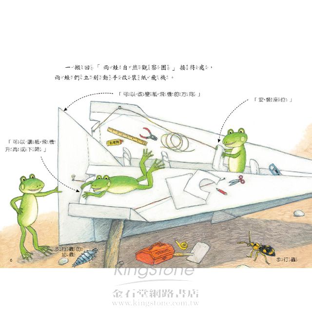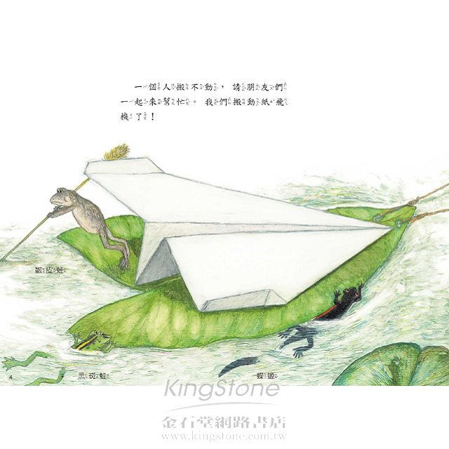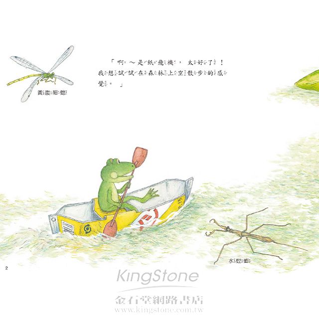 雨蛙先生意外發現一架紙飛機,他這次又有新點子了,可以帶大家進行空中散步!在空中飛行的感覺真舒服,能夠飛行的動物還真不少,好令人羨慕!可是,沒想到原來天空也是危機四伏。到底他們看見了哪些可以飛行的動物?又遇到什麼樣的危機?快跟著他們一起出遊!