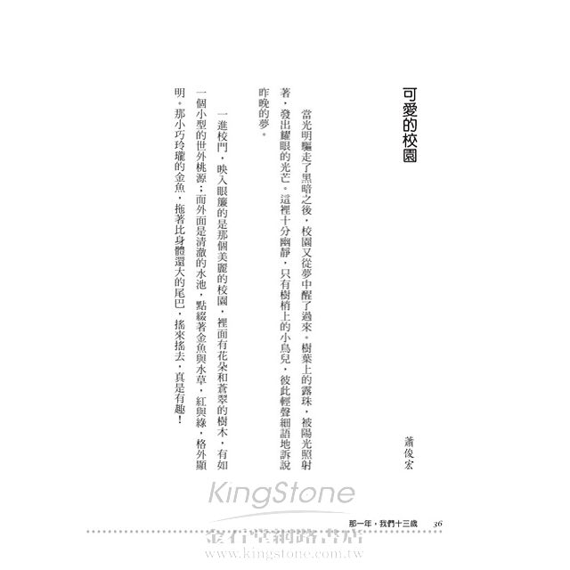 回想一下,各位十三歲的時候,在做些什麼事?又有哪些想法?想不想了解一下現在十三歲的孩子在思考著哪些問題?想不想知道他們和我們有哪些相似或相異之處?本書可以為你我解除這些疑惑。書中收錄國文老師三十多年前用毛筆書寫的作文,說不定可以讓有相同經歷的朋友們回憶起那些年、那些事……