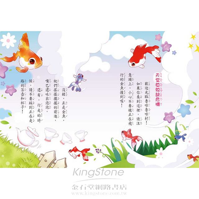 如果你來到魯咪魯咪村,千萬別被飛在空中的金魚、在路上行走的茶壺和杯子給嚇到喔!這是一個魔法村莊,只要學會各種咒語,就能利用神奇的魔粉施展各種魔法。