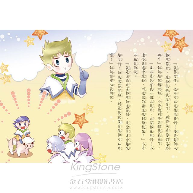 村子裡的人因為貪圖方便,隨意濫用魔粉施法,卻不知道危機已經悄悄來臨--因為氣候變異,製造魔粉的「天堂草」產量越來越少,再不節約使用,魔粉很快就會消耗殆盡,而魔法也將從魯咪魯咪村裡消失,這可不得了!