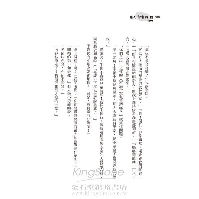 「愛說笑,牛頓不會寫兒童詩啦!我比牛頓行,像我這種腦袋空空的人最適合寫,因為腦袋滿滿的人已經裝不下寫兒童詩的靈感了!」