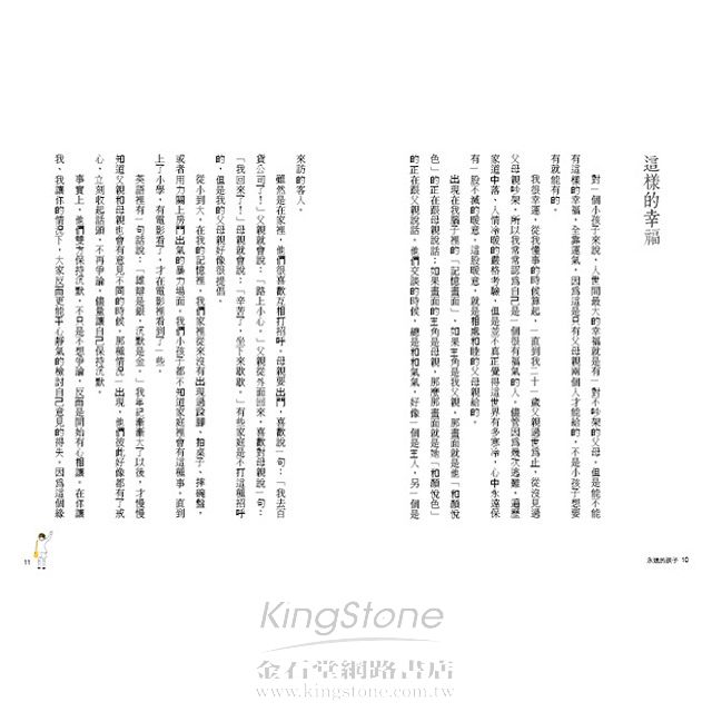 這個「永遠的孩子」,他用他純真的眼睛看世界,用他的赤子之心感受世界,也用他筆下充滿真善美的文學世界,回報、滋潤這個世界。閱讀《永遠的孩子》,讓我們或多或少,找回自己心中的那個孩子、那份純與真。這一趟閱讀之旅,從多年前開始到現在,都是愉快滿盈的。