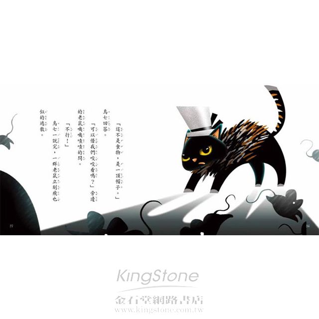 就因為這頂帽子,黑臉貓烏七發生了許多有趣的故事,徹底改變了他的生活。我們不也常這樣嗎?因為一些小事而引發一串連鎖效應。