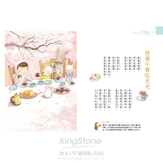 朗朗上口的押韻詩,念起來輕鬆好玩;生活化的題材,貼近孩子的心情;豐富的語彙,貼近孩子的語言;細膩可愛的圖畫,最能吸引孩子的目光。