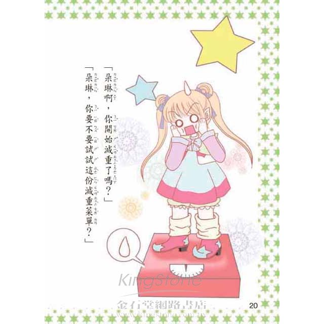 有一天,她無意間在奶奶的書櫃裡發現了一本《神奇魔法大全》,看見了一個「任意改變物體形狀」的魔法。朵琳靈機一動,只要施展這個魔法,不就可以讓自己擁有該凹就凹、該凸就凸的窈窕身材?