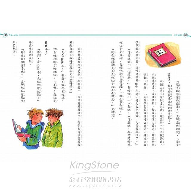 明天國際圖書出版一系列的《少年偵探隊》,書中設計了層層關卡,偵探推理的遊戲,最讓人享受的,應該就是解迷的過程,尤其是當讀者翻書到末頁了,心中對關卡已經有解答,就會很期待的想知道罪犯是誰,並且和作者鬥智,內心充滿了新鮮感,並且刺激孩子的腦力激盪。