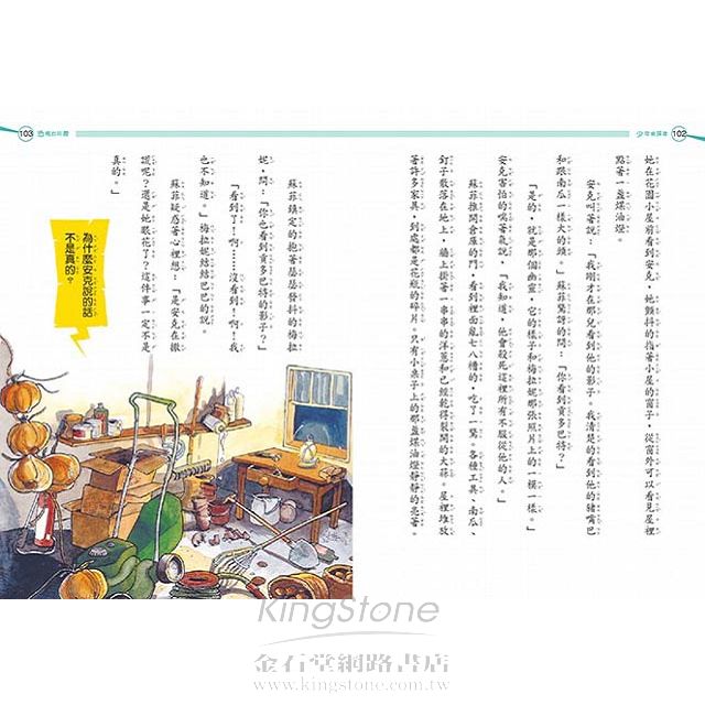 1. 有別於一般的偵探故事書,本書的每則故事皆在一至兩個跨頁設定不同的「推理」與「問題」,引導讀者一起進入尋找破案關鍵線索。