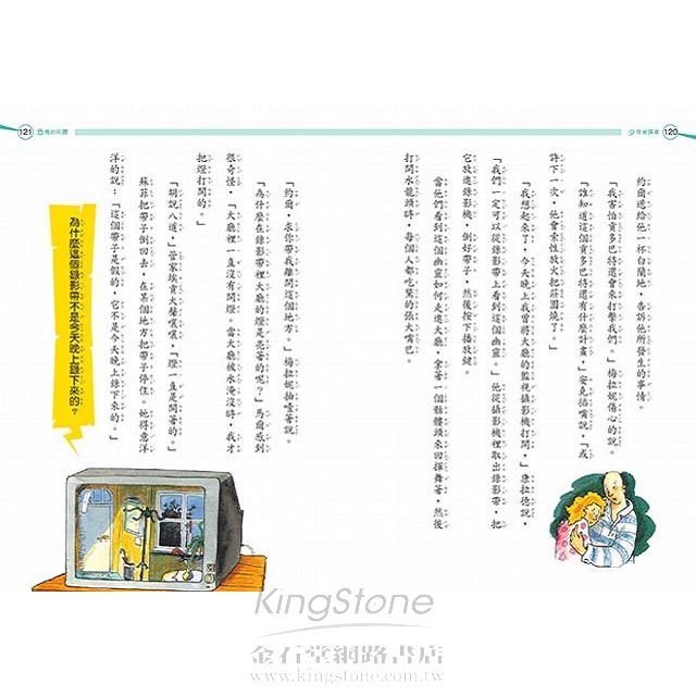 明天國際圖書出版一系列的《少年偵探隊》,書中設計了層層關卡,偵探推理的遊戲,最讓人享受的,應該就是解迷的過程,尤其是當讀者翻書到末頁了,心中對關卡已經有解答,就會很期待的想知道罪犯是誰,並且和作者鬥智,內心充滿了新鮮感,並且刺激孩子的腦力激盪。