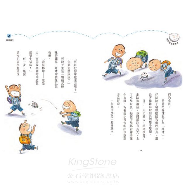 《我的爸爸是棒球》?乍一看,這書名讓人明白中又帶點疑惑:是不是看錯了?讀下去,哇,果然是一個漫畫版的強勁幽默故事!它有一點兒像E.B.懷特的 《小老鼠史都華》,但卻跑向不同的方向,想像更大膽!懷特的故事還充滿老式的溫暖、端莊的敍事、文學的嚴謹,一看就是上個世代的童話。《我的爸爸是棒球》 則充滿了動漫、影視的戲謔躍動、現代節奏和無厘頭,一看就是這個時代的童話。這個點子,如果放其狂野想像,是可以飛到宇宙邊緣去的。然而,作者雖然想到一 個爆笑的點子,卻又不想純搞笑。他在文字上的「控球」控得極好,在突梯、好笑的情節中,又用傳統的親子衝突、人生追尋,把故事穩住。於是,故事嬉鬧起來, 好像周星馳上身;溫情之中,又留下了古典的餘溫。於是,好笑處,我們笑得輕鬆;說情處,我們又感受到親情的衝突與悸動。可以說,這是動漫時代才會出現的 「新種童話」。