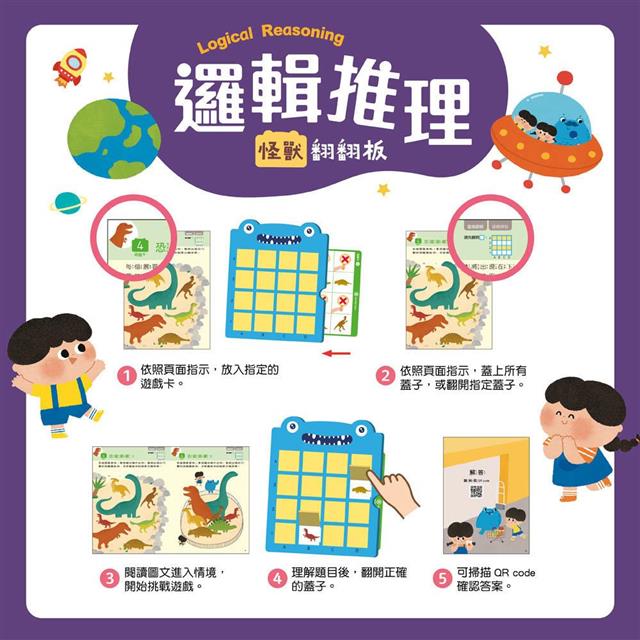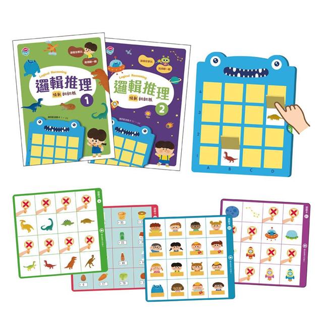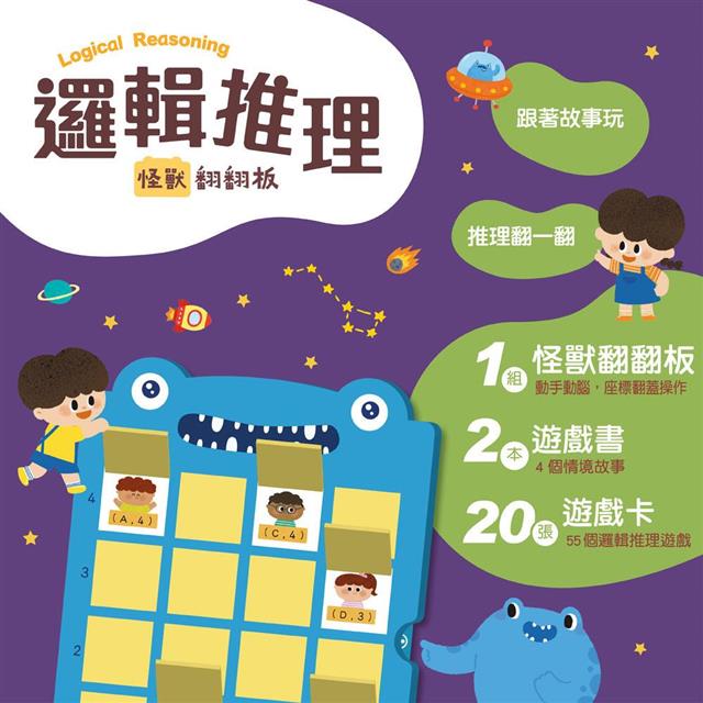 1組怪獸翻翻板+ 2本遊戲書 + 55個邏輯推理遊戲