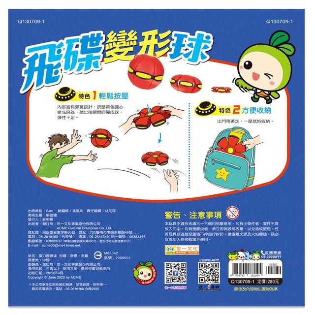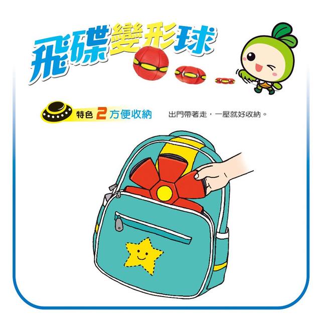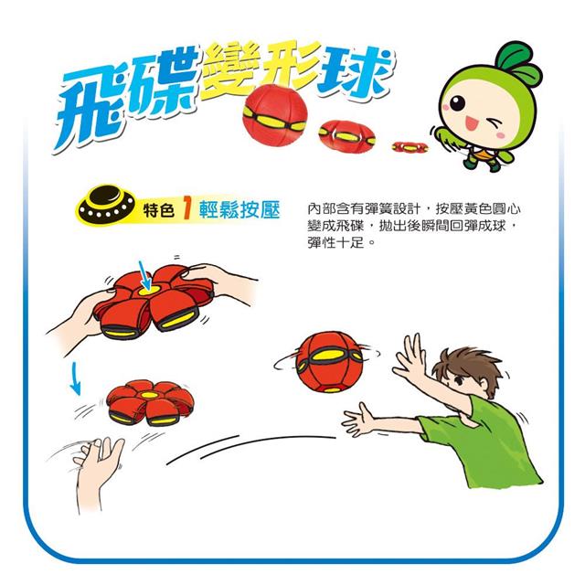 最新款運動玩具,球形從中間按壓後變成飛盤型態,拋出後在空中又變成球形 飛碟形狀可以收納於背包,攜帶方便,讓人愛不釋手的新款戶外玩具。