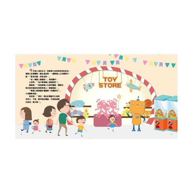 今天是小波的生日,一家人開心地來到玩具店幫他挑選禮物。沒想到這正是一場奇遇的開端!他們不只碰見了會說話的機器人-派奇,還認識了一位令人意想不到的新朋友!讓我們一起探索箇中的奧秘,體驗AI的神奇吧!