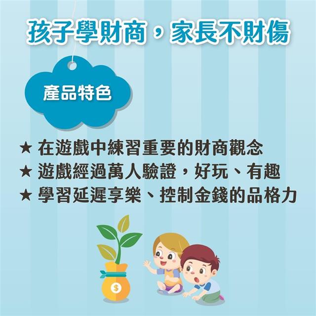 父母親是孩子的第一個金錢老師,說的話或行為將深深影響孩子一輩子的金錢觀,這套兒童理財產品以遊戲方式,可以有效協助父母親教導孩子,不用擔心不會教或教錯。
