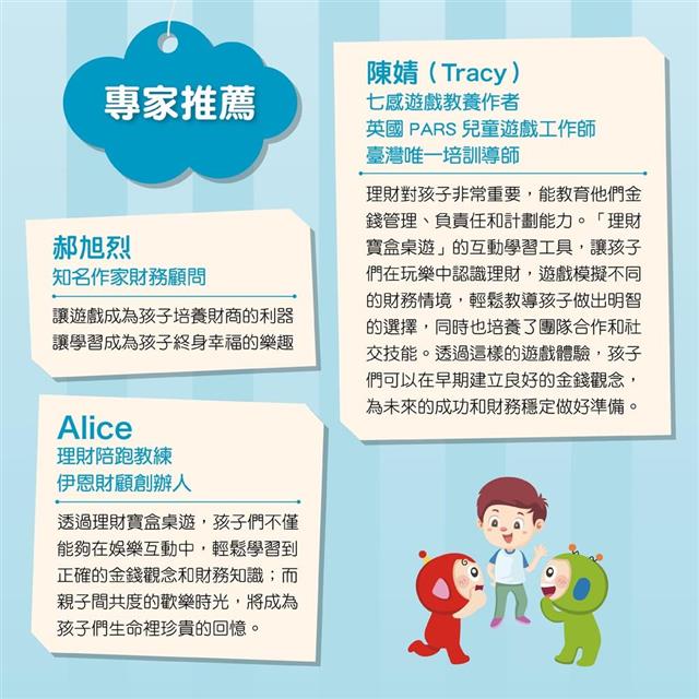 透過理財寶盒桌遊,孩子們不僅能夠在娛樂互動中,輕鬆學習到正確的金錢觀念和財務知識;而親子間共度的歡樂時光,將成為孩子們生命裡珍貴的回憶。
