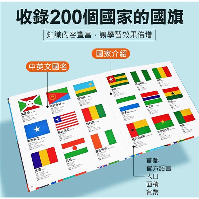 認識世界200個國家的國旗,輕鬆學習有趣的國家知識與文化小常識。