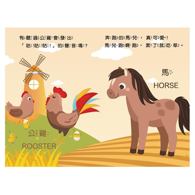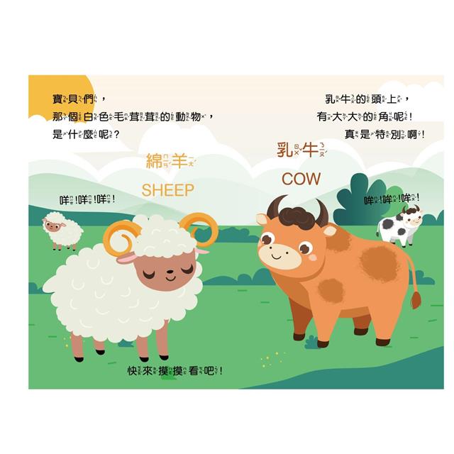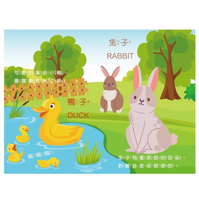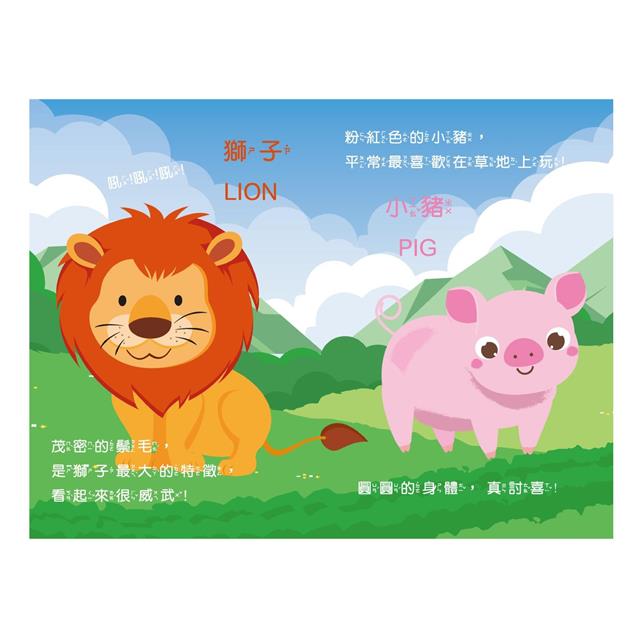 有標示中文英文還有注音,讓小朋友可以學習動物的字彙,馬上認識動物喔