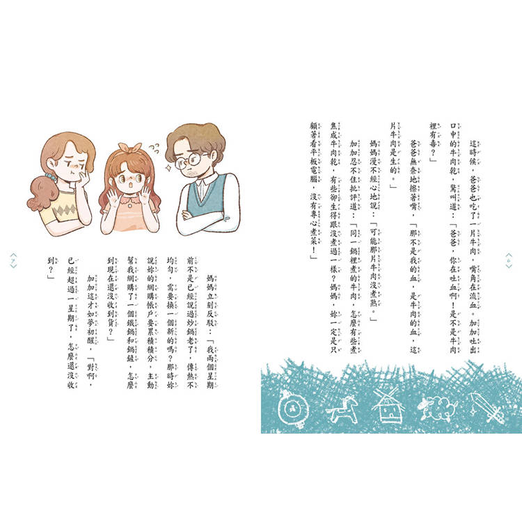 爸爸和媽媽都以懷疑的目光睥睨著她,她瞪大了眼說:「你們不會以為我私吞了買鐵鍋的錢吧?」