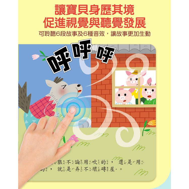 小手按一按圓形的按鈕,耳朵聽一聽趣味歌謠,培養對音樂的律動感,讓孩子在學習的過程中充滿樂趣!