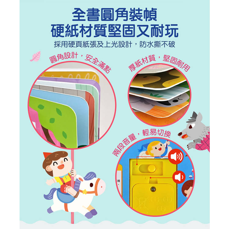 小手按一按,聽一聽世界經典童話!按第一下聆聽童話故事內容,按第二下感受情境趣味音效,音質清晰彷彿身歷其境,讓孩子在閱讀的過程中充滿樂趣!