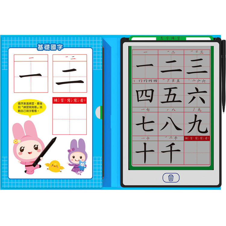讓孩子從此愛上寫字!這款結合字卡臨摹與液晶畫板的練字神器,將「筆畫練習」、「臨摹字卡」和「液晶畫板」合而為一。可以照著字卡上的筆順描寫,在液晶畫板上反覆練習。寫錯了也沒關係,一鍵清除,不怕浪費紙張,桌面也不會弄得髒兮兮!