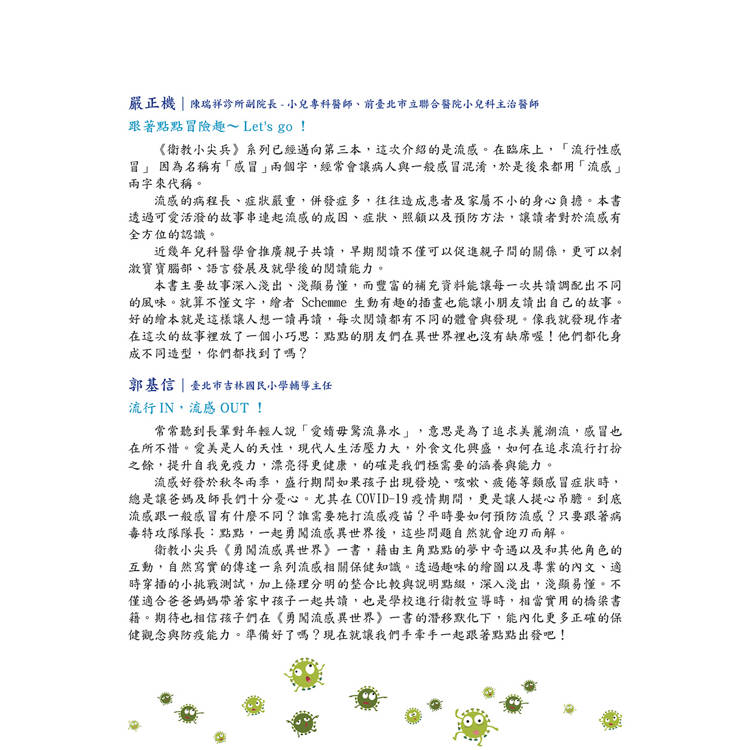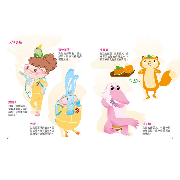 ☉ 用故事、圖畫帶孩子一起對抗病毒,傳遞重要的保健知識,提升孩子的健康管理能力!