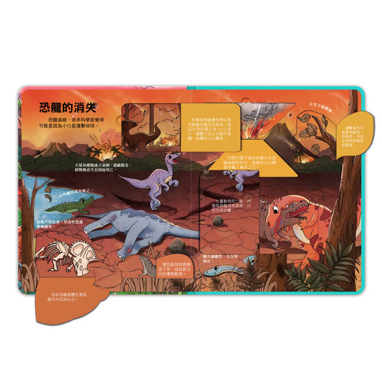 《百問百答圖解翻翻書-揭祕恐龍》利用淺顯易懂的文字故事內容,配合翻翻頁的問答小知識,超過30種不同的翻翻機關頁面,只要翻開來就能立刻解答疑問,帶領孩子們探索世界,開啟奇妙的探索科普之旅!