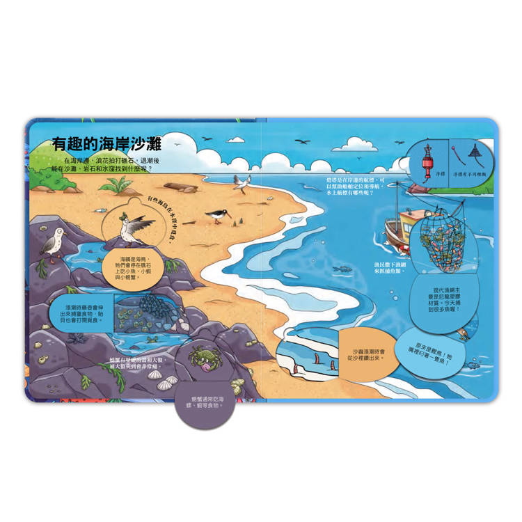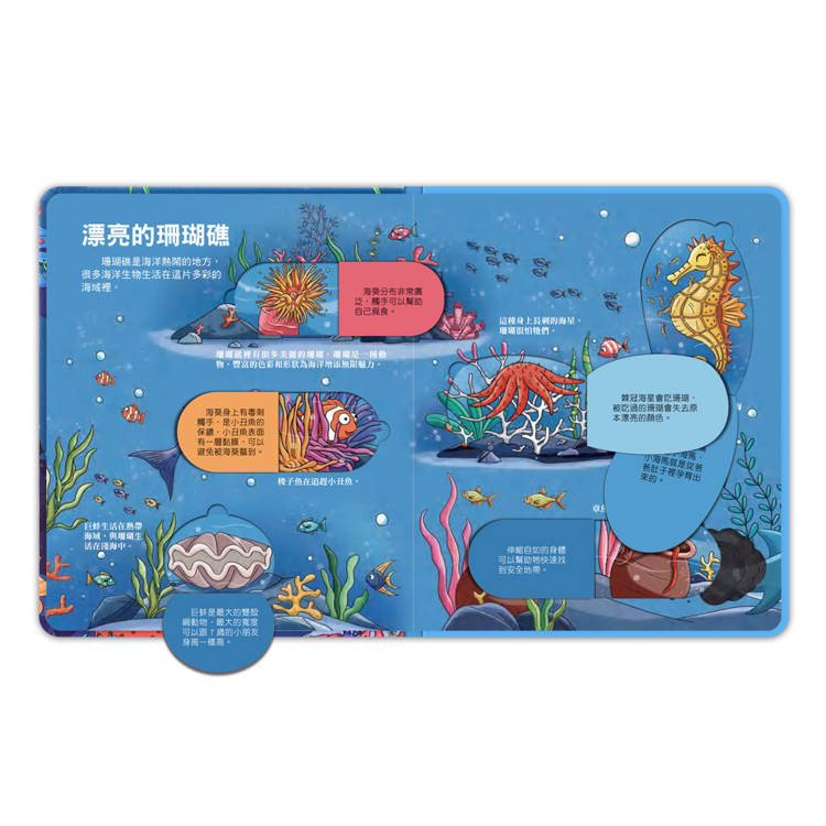 海洋世界裡有好多不同的生物,沙灘上的動物有哪些呢?珊瑚礁生活在哪裡?深海裡有生物存在嗎?快來一起探索神祕又浩瀚的海洋吧!