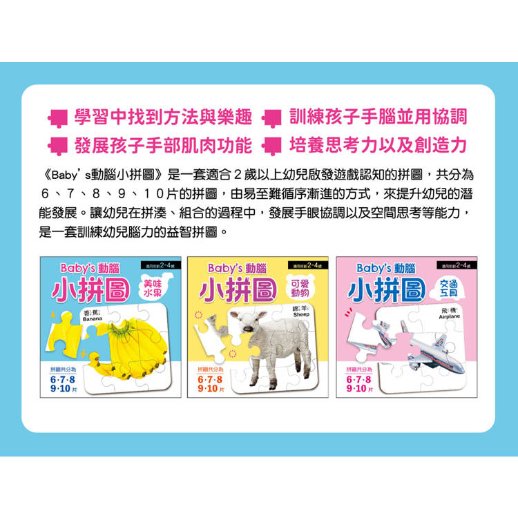 ★片數由6~10片循序漸進,由簡單到困難,有效提升幼兒潛能,讓孩子自信挑戰不挫折。